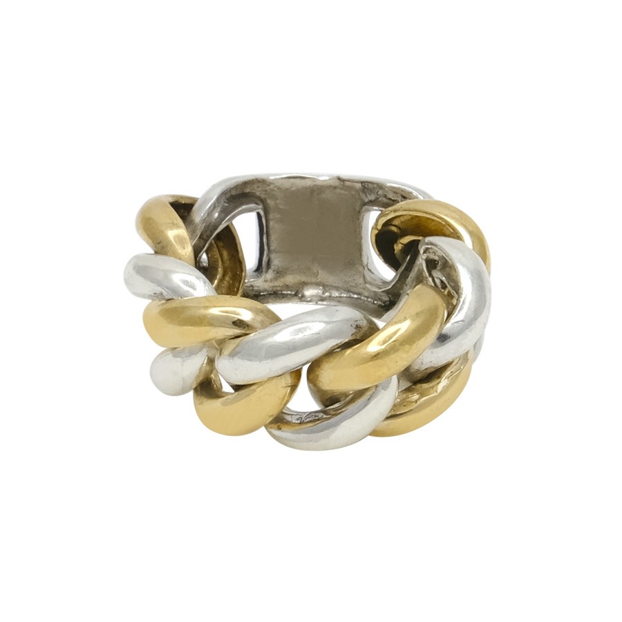 Anello morbido con maglia catena bicolore realizzata a mano in argento 925 e bronzo