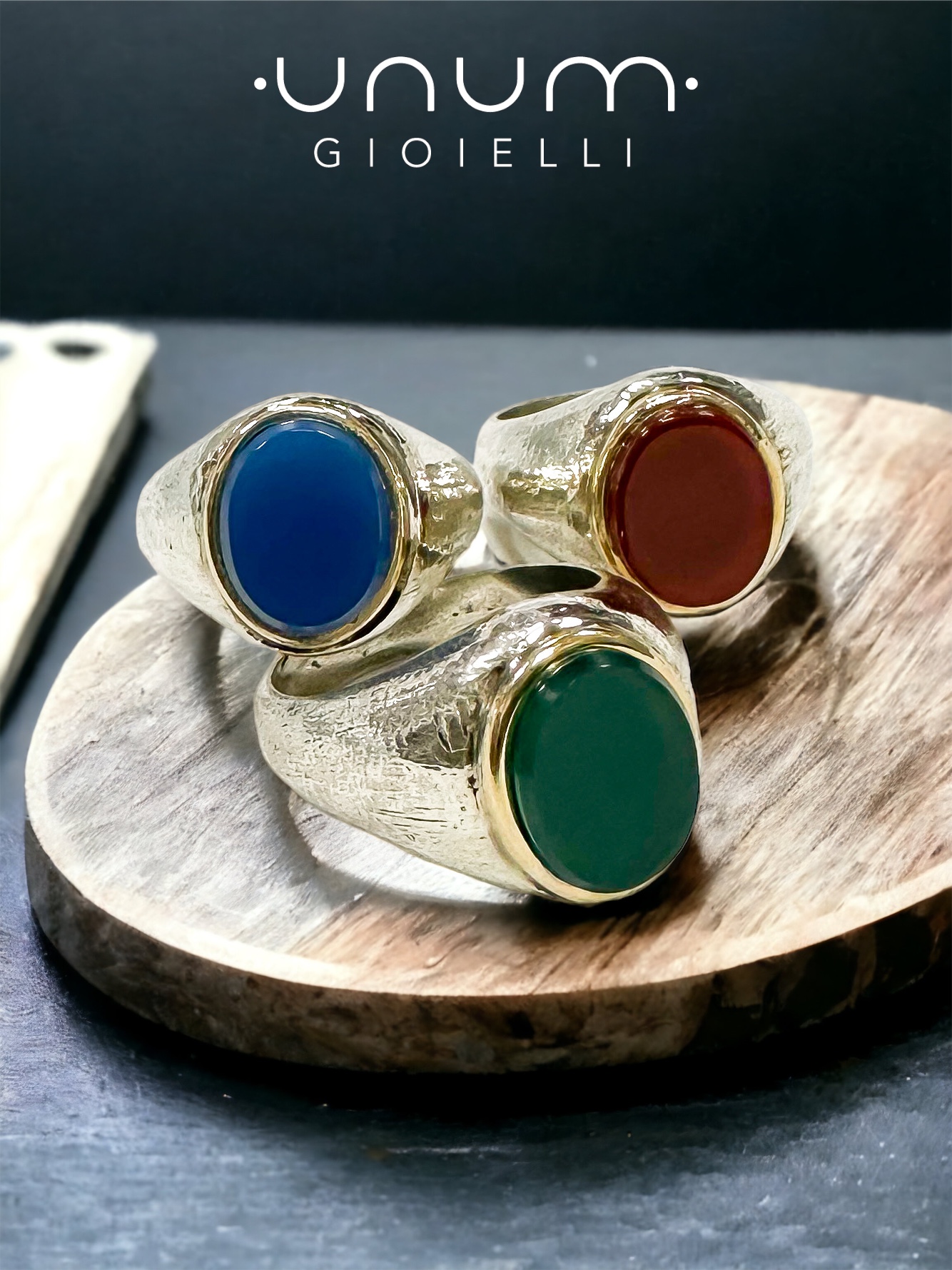 Anello da mignolo realizzato artigianalmente in argento 925 pieno con pietra naturale dura piatta di forma ovale.