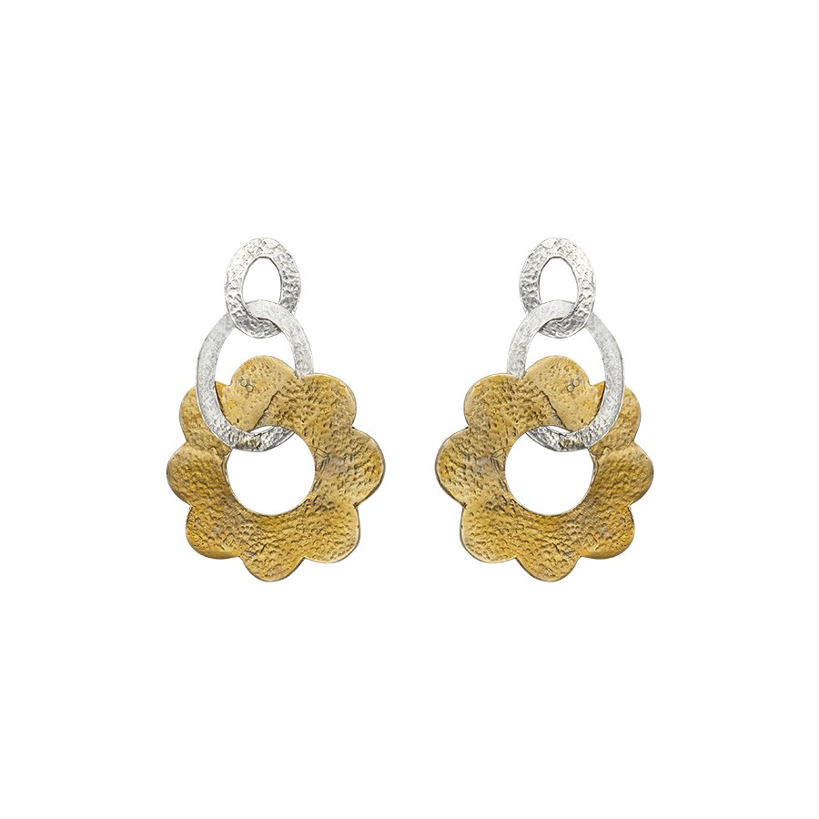 Orecchini realizzati artigianalmente in argento 925 con elementi in bronzo.