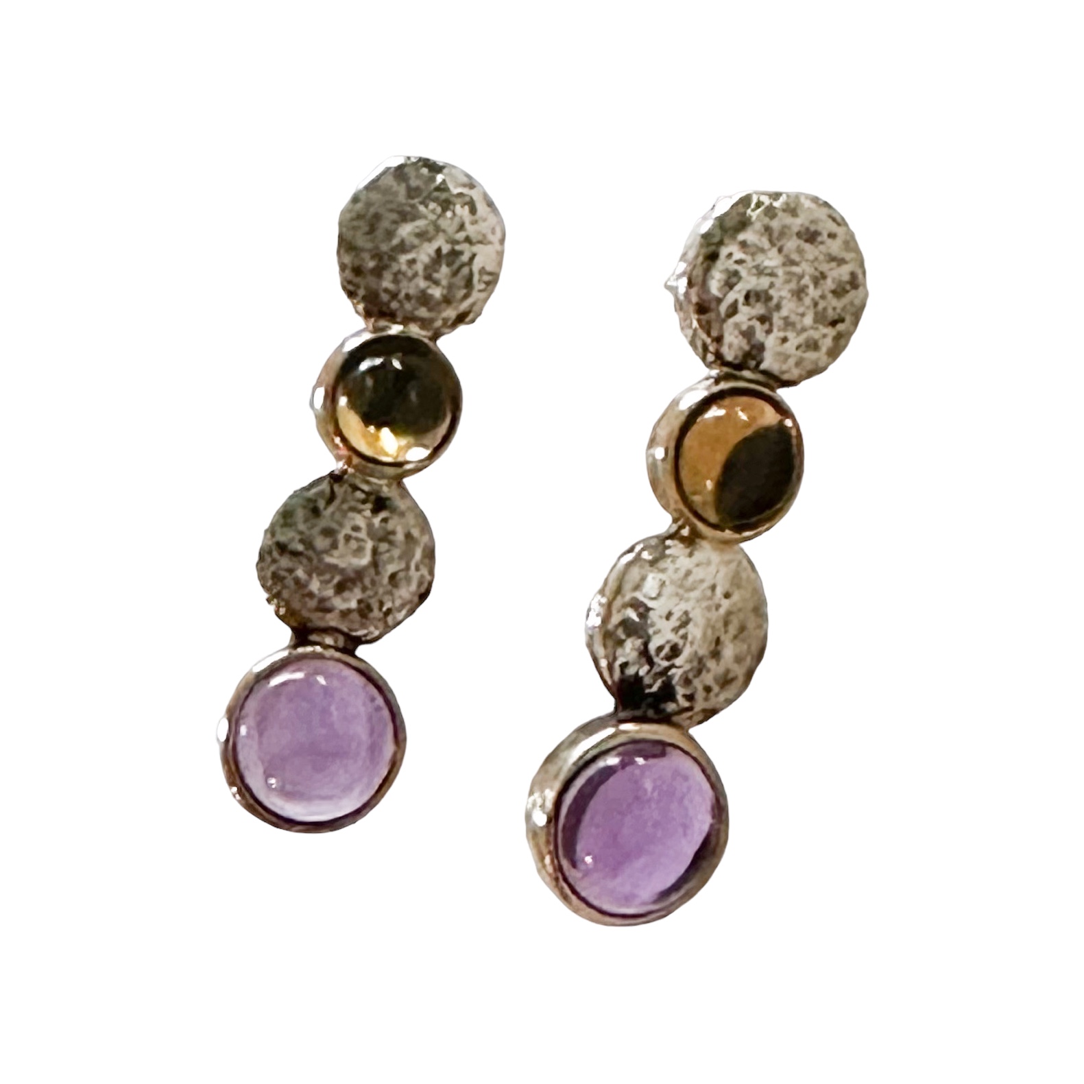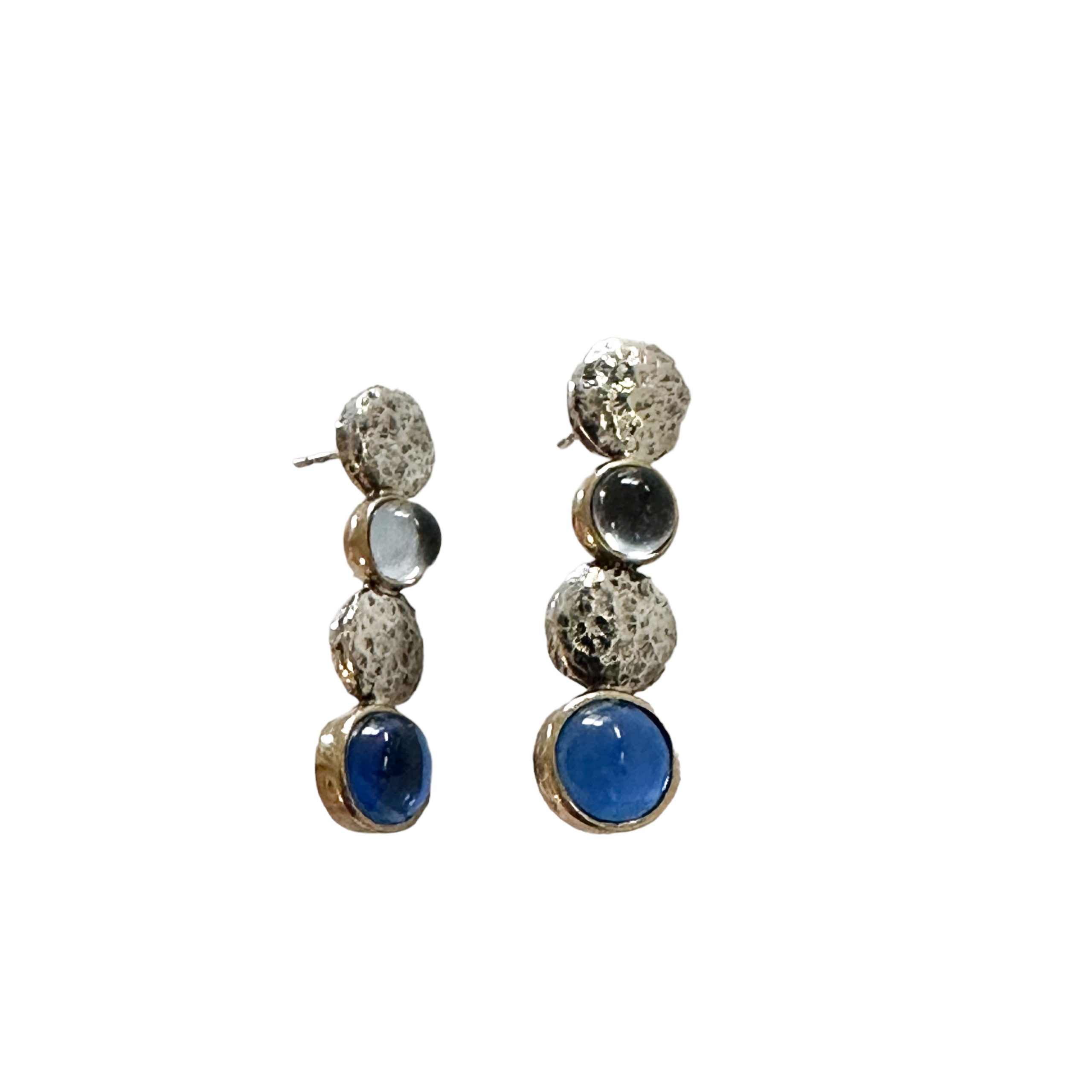 Orecchini realizzati artigianalmente in argento 925 e bronzo con pietre dure naturali cabochon a scelta.
